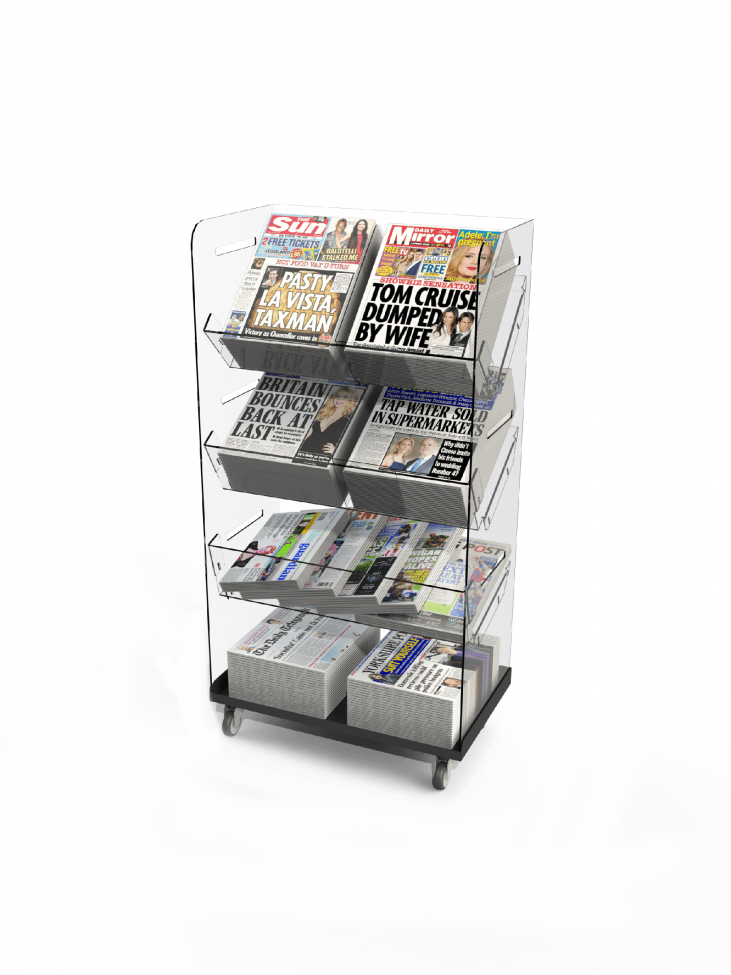 Shopfit Design & Management Ltd. offer the Bartuf Flexi-News Twin Tower Mobile Newspaper Display, which offers the following: