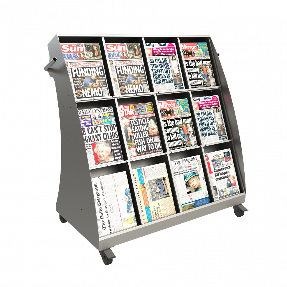 The 12 Facing Bartuf Slimline Outside Newspaper Display Stands are an ideal way of promoting your newspaper titles outside your shop or on your forecourt. The Bartuf Outside Newspaper Stands offer a wide range of sizes to suit the number of Facings that you offer. Manufactured from steel with a silver finish. Integral PVC lids Fully mobile Designed to fit through a standard doorway Weatherproof but not fully watertight.